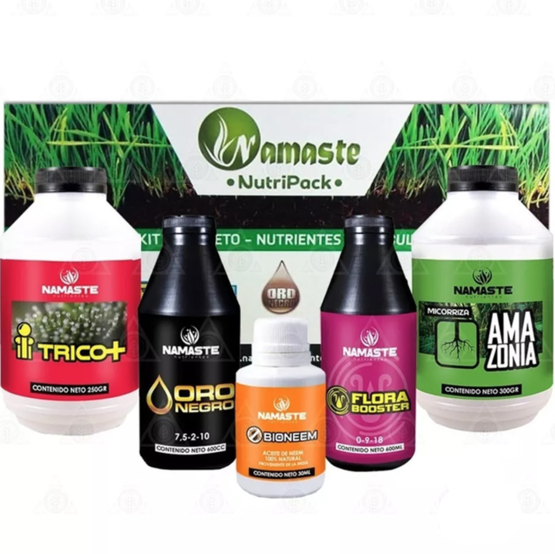 Namaste ORO NEGRO: Formulado con Ácidos Húmicos derivados de Leonardita de primer calidad y Extracto de algas Aschopyllum Nodosum. Oro Negro es un Aditivo para complementar el crecimiento y las primeras etapas de floración.